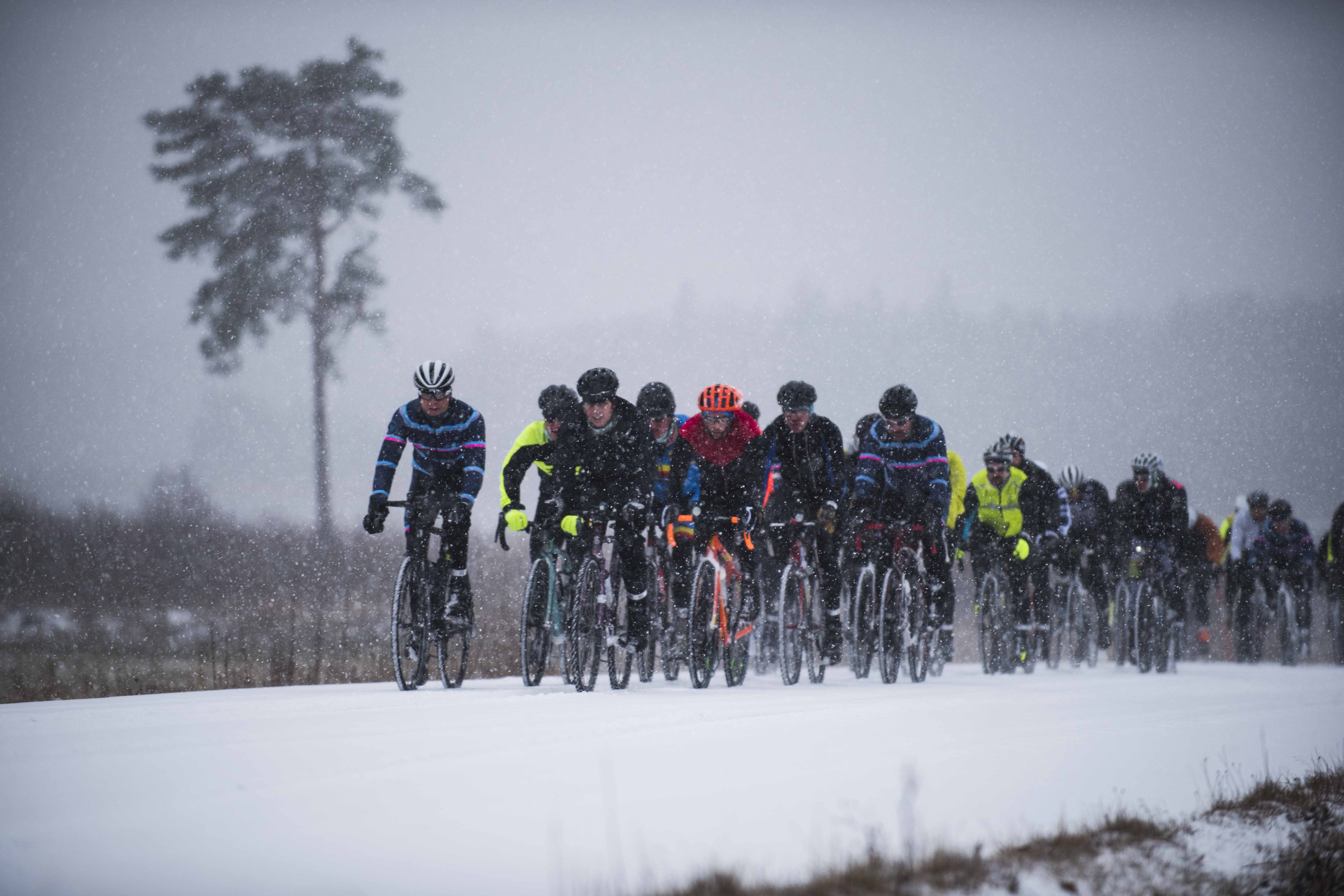 Vi rullade bort till Hovrättstorget 05.40 och det var med en spännande känsla i kroppen. Jag har hållit på med cykling i över 25 år och tävlat i över 20 länder men visste att idag skulle jag sitta på hojen längre än jag någonsin gjort tidigare och jag skulle göra det i ett vinterväder som hade fått en klass 1 varning. Jag hade heller ingen större koll på nivån på övriga cyklister, visst hade vi gått ut med att vi siktade på 25km/h i snitt och att det var vintercykel med dubbdäck som gäller men hur många av dem anmälda hade testat något liknande innan och visste vad dem skulle orka?! Normalt sätt när vi arrangerar våra Abloc Camps brukar vi ha minst tre olika fartgrupper men idag skulle vi bara ha möjlighet till en för att kunna hålla säkerheten så bra som möjligt med våra fordon och funktionärer. Jag visste också att rullen skulle ha mindre betydelse eftersom vi skulle köra på just vintercyklar med skärmar och dubbdäck vilket skulle leda till större avstånd mellan varandra och lägre farter. Det skulle helt enkelt ställa ännu större prov på individen själv.